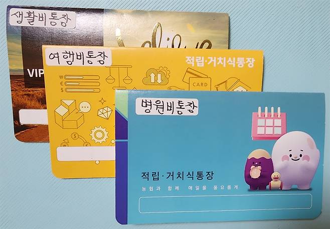 | ▲ 남편과 만든 병원비 통장과 여행비 통장 얼마 전부터 남편과 연금에서 가장 먼저 병원비와 여행비를 저축하는 통장을 만들었다. |