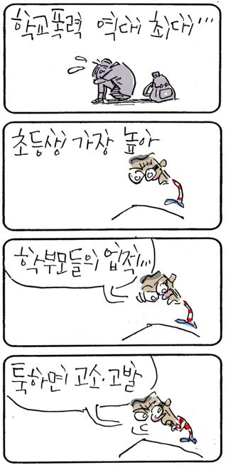 [최경락 꼬투리] 학교폭력 역대 최대... 최경락 2025. 9. 16. 20:33 음성으로 듣기 음성재생 설정 이동 통신망에서 음성 재생 시 데이터 요금이 발생할 수 있습니다. 글자 수 10,000자 초과 시 일부만 음성으로 제공합니다. 남성 여성 느림 보통 빠름 음성 재생하기 닫기 음성 재생 중지 번역 설정 번역beta Translated by kaka i 한국어 - English 영어 日本語 일본어 简体中文 중국어 Nederlands 네델란드어 Deutsch 독일어 Русский 러시아어 Malaysia 말레이시아어 বাঙ্গোল ভাষা 벵골어 tiếng Việt 베트남어 Español 스페인어 اللغة العربية 아랍어 Italiano 이탈리아어 bahasa Indonesia 인도네시아어 ภาษาไทย 태국어 Türkçe 튀르키에어 Português 포르투갈어 Français 프랑스어 हिन्दी 힌디어 닫기 번역중 Now in translation 글씨크기 조절하기 글자크기 설정 파란원을 좌우로 움직이시면 글자크기가 변경 됩니다. 가 매우 작은 폰트 작은 폰트 보통 폰트 큰 폰트 매우 큰 폰트 가 이 글자크기로 변경됩니다. (예시) 가장 빠른 뉴스가 있고 다양한 정보, 쌍방향 소통이 숨쉬는 다음뉴스를 만나보세요. 다음뉴스는 국내외 주요이슈와 실시간 속보, 문화생활 및 다양한 분야의 뉴스를 입체적으로 전달하고 있습니다. 닫기 인쇄하기 Copyright © 저작권자 © 중부일보 - 무단전재 및 재배포 금지