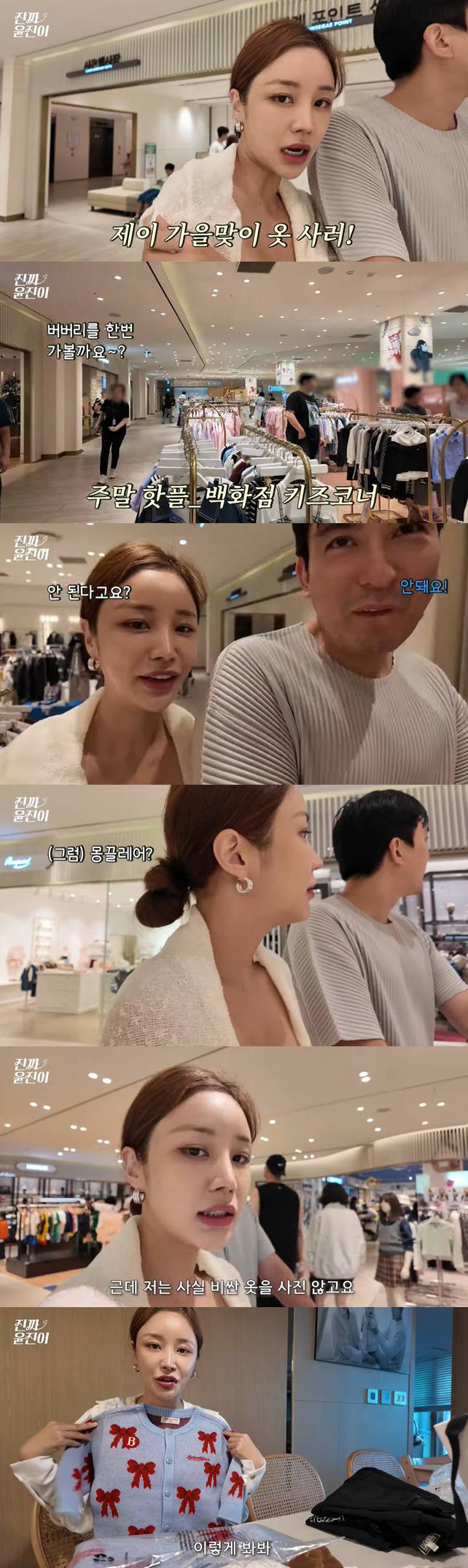 윤진이는 "첫째딸의 가을 옷을 사러 왔다"면서 남편에게 "버버리, 몽끌레어 매장 한번 가볼까?"라고 물었다. 이에 남편은 "안된다"고 단호하게 거절해 웃음을 자아냈다.