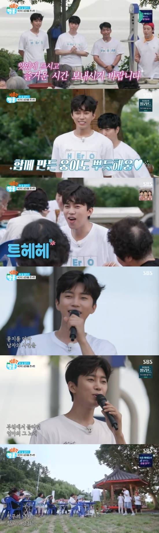 식사를 미친 후 임영웅은 마을 어르신들을 위해 '섬마을 콘서트'를 열었다. 임영웅은 노래에 앞서 "소모도에 와서 좋은 추억 만들어간다. 오는 첫날부터 환영해주셔서 감사하다"면서 '항구의 남자'를 선곡해 열창했다.