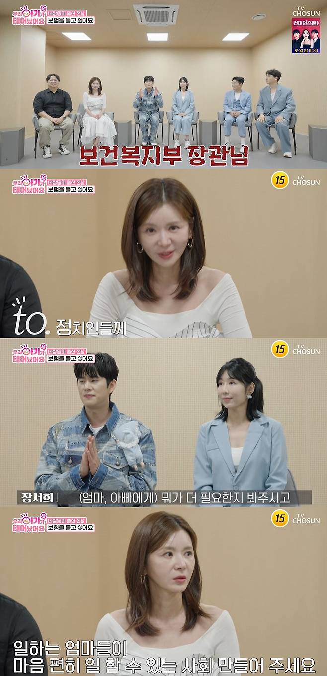 이에 '출산특파원'들은 출산 장려를 하기 전에 제도 개선이 먼저 되어야 한다고 밝혔다. 손민수는 보건복지부 장관에게 "예비 엄마, 아빠들을 위해서 태아 보험에 신경 써 달라"고 전했다. 장서희는 "정치인분들, 저희 프로그램 보면서 (엄마, 아빠에게) 뭐가 더 필요한지 봐주시고, 일하는 엄마들이 마음 편히 일 할 수 있게 해달라"며 소신발언을 했다.