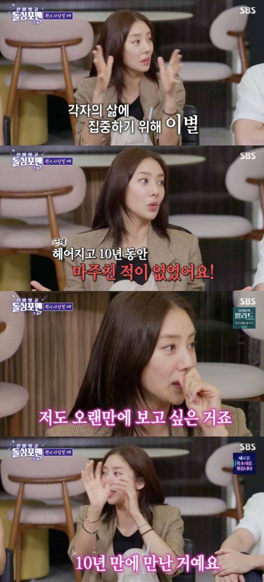 손담비는 “10년 후에 제 생일파티에서 만났다. 1차를 끝내고 2차를 가야 하는데 남편이 하는 고깃집으로 가게 됐다. 오랜만에 보고 싶은 것이다. 오빠가 쓱 들어오더라. ‘오랜만이야’ 하는데 심장이 너무 뛰더라. 너무 사랑했던 사람을 10년 만에 본 것이다. 제가 39살이었다. 새벽 내내 얘기를 했다. 그간의 이야기를”이라며 재회 스토리를 밝혔다.