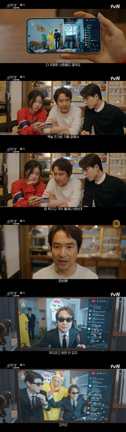 10만 명의 시청자 수를 보유한 인기 먹방 유튜버 '꼬끼오'의 라이브 방송을 지켜보던 신사장(한석규 분)은 그의 엄청난 수익에 충격을 받았다. "누군 그냥 백날 뜨거운 기름 앞에서 닭 튀기고 겨우 월세나 버는데"라며 자신의 처지와 비교하는 그의 모습은 보는 이들에게 씁쓸함과 동시에 웃음을 안겼다.