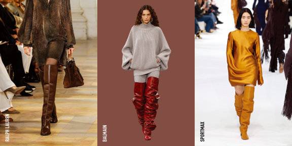 주름진 실루엣의 슬라우치 부츠는 하체를 자연스럽게 커버하면서도 여유로운 무드를 연출하는 데 제격. 랄프로렌은 페이즐리 셔츠 드레스에 브라운 부츠를 매치해 포크 감성을 강조했고, 스포트막스는 드레스와 부츠의 컬러를 통일해 부드러운 긴장감을 완성했다. 발망의 글로시한 부츠, 루이비통의 볼륨 부츠처럼 실루엣이나 텍스처로 포인트를 준 디자인도 눈에 띈다. 슬라우치 부츠는 실루엣이 볼드해 심플한 룩에 매치하면 별다른 장식 없이도 충분히 멋스럽다.