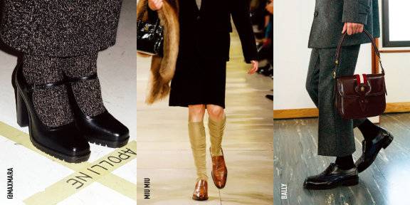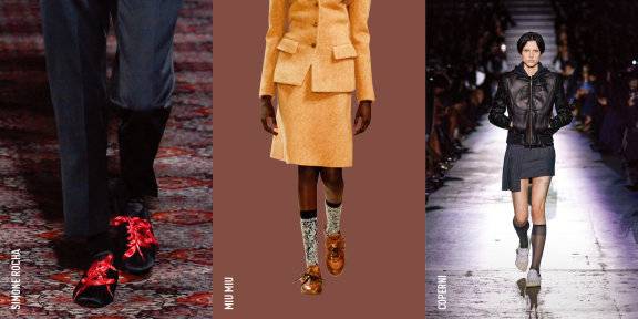미우미우는 군더더기 없는 브라운 로퍼에 복고풍 니삭스를 매치해 학생 같은 무드를 연출했고, 빅토리아베컴과 발리는 미니멀한 옥스퍼드 슈즈로 고전적인 매력을 강조했다.