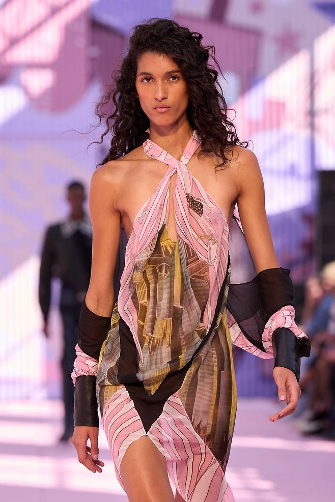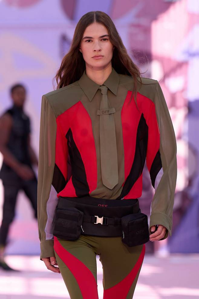 뉴욕의 한 디자인 고등학교 강당에서 열린 오프 화이트 쇼. 무대가 된 공간부터 풋풋한 하이틴 에너지가 흐릅니다. 그래피티로 가득한 벽과 농구 코트를 배경으로, 모델들은 모던한 테일러링 재킷부터 우아한 드레스까지 폭넓은 룩을 선보였죠. 과감한 패턴과 색상은 키치한 무드를 더했고, 뉴욕 도심을 담은 그래픽은 브랜드 특유의 스트릿 감성을 놓치지 않았습니다. 학창 시절의 기억을 불러일으킨 강당이라는 장소는 쇼의 분위기를 한층 고조시켰답니다.