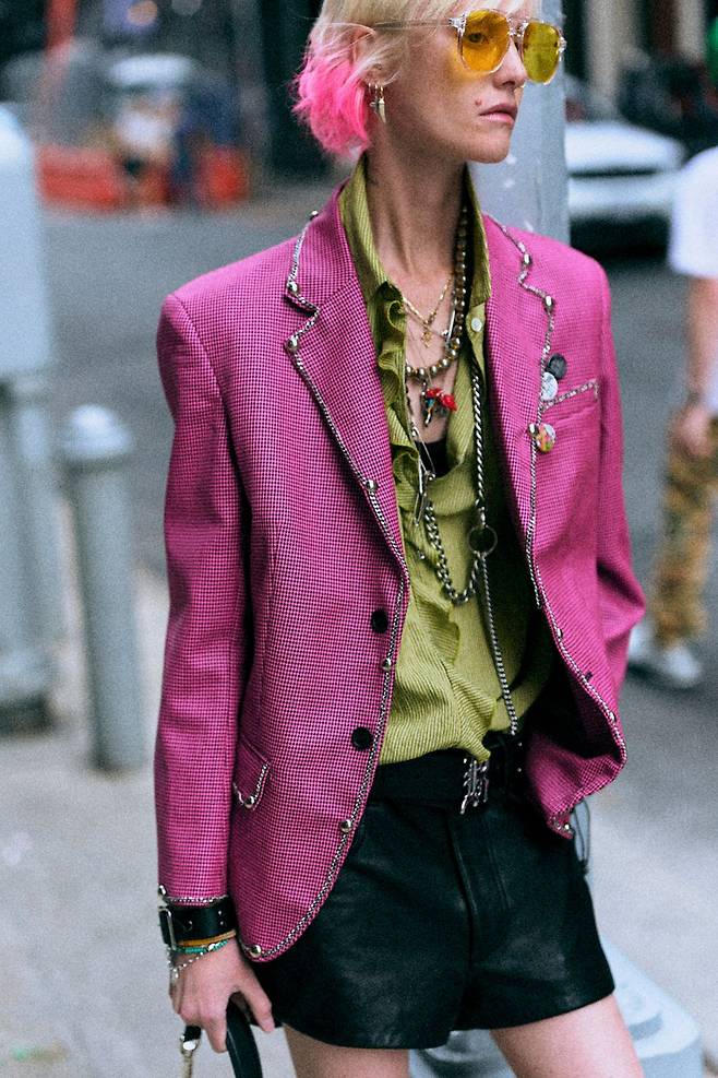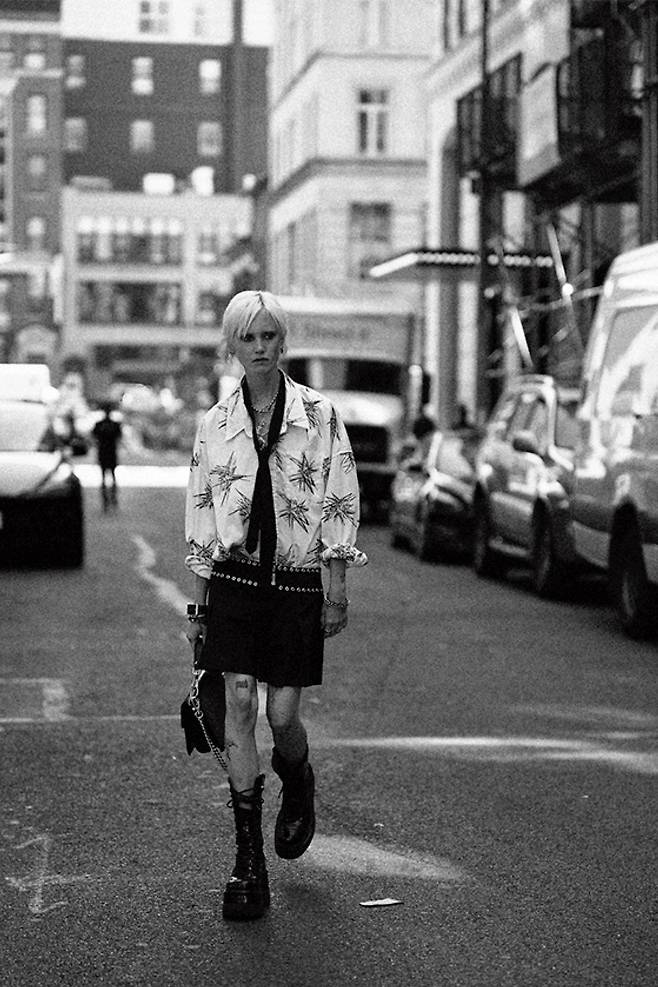 뉴욕의 길거리 하면 펑크를 빼놓을 수 없죠. R13 디자이너 크리스 레바는 이번 시즌 반항적이면서도 낭만적인 펑크를 선보였습니다. 이전 시즌에는 강렬하고 반항적인 룩으로 거리의 자유분방함을 담아냈다면, 이번 시즌은 한층 부드러운 러플 디테일과 반다나 프린트를 추가해 도시 속 청춘을 표현했죠. 컬러 팔레트 또한 한층 다채로워졌습니다. 오버사이즈 실루엣과 자유로운 레이어링은 여전히 거리의 에너지를 전했지만, 이번에는 부드럽고 달콤한 여운을 남겼습니다. 펑크와 로맨틱, 자유와 우아함이 공존하는 R13의 뉴욕은 조금 더 따뜻했습니다.
