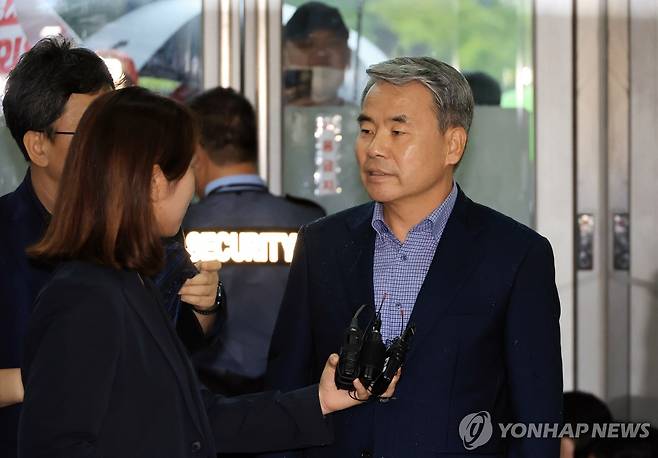 (서울 연합뉴스) 최재구 기자 = 이종섭 전 국방부 장관이 17일 서울 서초구 순직해병 특검(이명현 특별검사) 사무실에서 열린 '호주 도피성 출국' 의혹 관련 참고인 조사에 출석하며 취재진 질문에 답하고 있다. 2025.9.17