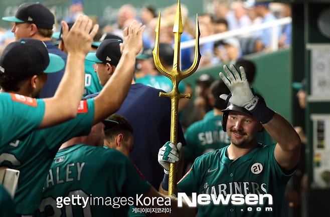시애틀 매리너스 칼 롤리는 9월 17일(한국시간) 미국 미주리주 캔자스시티 코프먼 스타디움에서 열린 '2025 메이저리그' 캔자스시티 로열스와 경기에서 홈런을 기록했다.