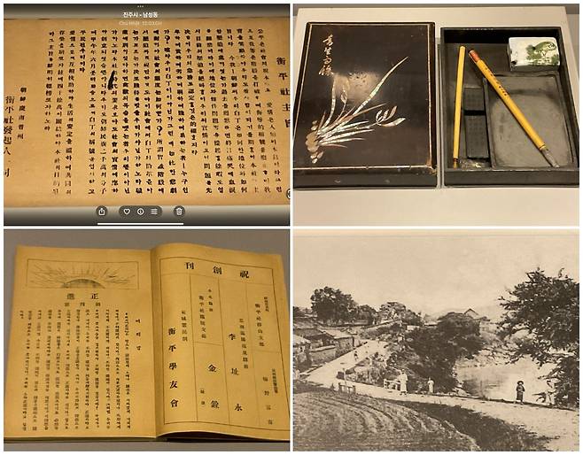 | ▲ 진주박물관 소장 자료. 형평사 창립 취지문, 진주 지식인 강상호 문구, 형평사 잡지 정진, 일제에 의해 파괴된 진주 읍성 풍경 |