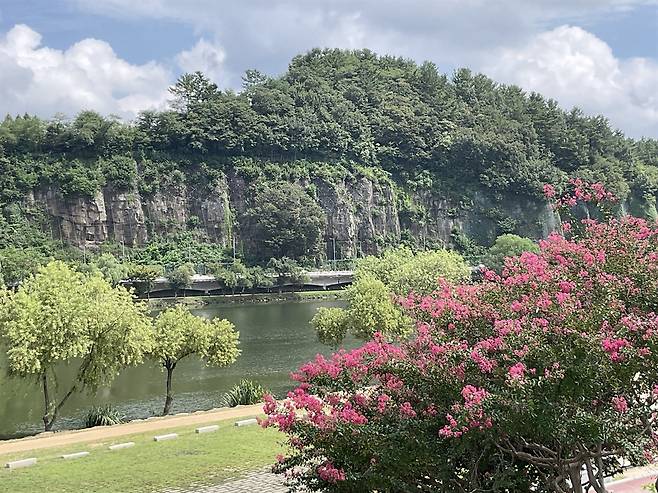 | ▲ 진주 남강의 수직 절벽 촉석(矗石) |