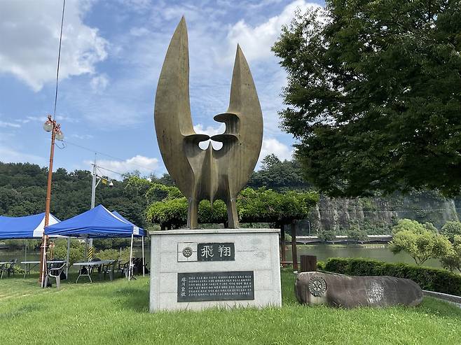 | ▲ 비상(飛翔) 남가람공원 조형물, 날개 편 백로가 하늘 높이 날고 있는 형상 |