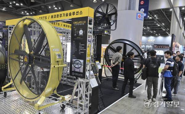 17일 고양특례시 킨텍스에서 열린 '2025 대한민국 안전산업박람회'에서 참관객들이 안전 기기를 살펴보고 있다. 이번 박람회는 ‘스마트 재난관리, 재난 대응의 새로운 패러다임을 열다’를 주제로 380개 기관·기업이 참여했다.