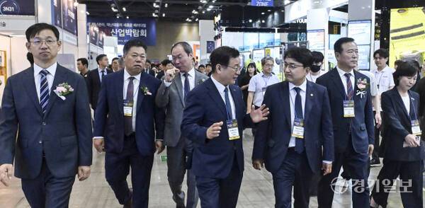 17일 고양특례시 킨텍스에서 열린 '2025 대한민국 안전산업박람회'에서 김광용 행정안전부 재난안전관리본부장, 박채옥 한국철도공사 철도연구원장, 박경국 한국가스안전공사 사장 등 내빈이 각 부스를 돌아보고 있다. 이번 박람회는 ‘스마트 재난관리, 재난 대응의 새로운 패러다임을 열다’를 주제로 380개 기관·기업이 참여했다.