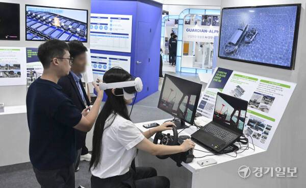 17일 고양특례시 킨텍스에서 열린 '2025 대한민국 안전산업박람회'에서 참관객들이 VR을 통해 직접 안전기기를 체험해보고 있다. 이번 박람회는 ‘스마트 재난관리, 재난 대응의 새로운 패러다임을 열다’를 주제로 380개 기관·기업이 참여했다.