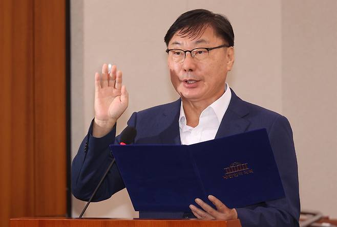 | ▲ 이화영 전 경기도평화부지사가 2024년 10월 2일 오전 서울 여의도 국회 법제사법위원회에서 열린 박상용 수원지검 부부장검사 탄핵소추사건 조사 청문회에 출석해 증인 선서를 하고 있다. |
