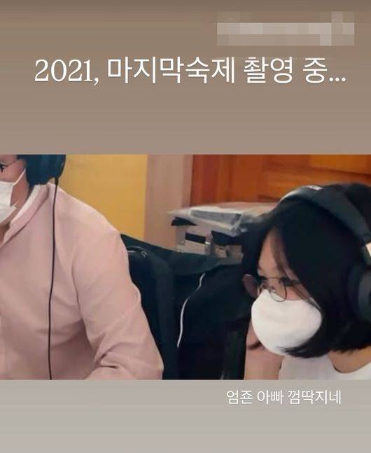 윤혜진은 17일 자신의 인스타그램 스토리에 “2021, 마지막 숙제 촬영 중…”이라는 글과 함께 사진과 영상을 게재했다.