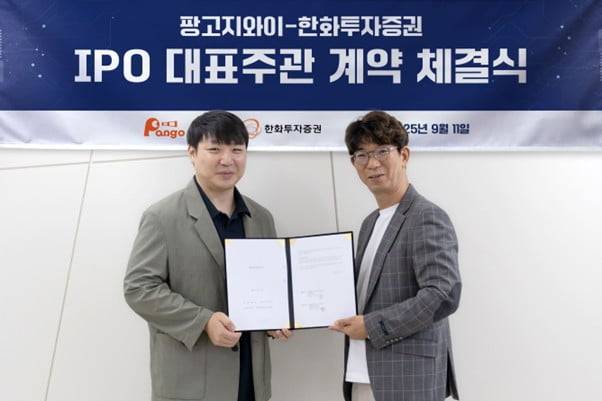 팡고지와이는 17일 한화투자증권과 대표 주관사 계약을 체결했다고 밝혔다.