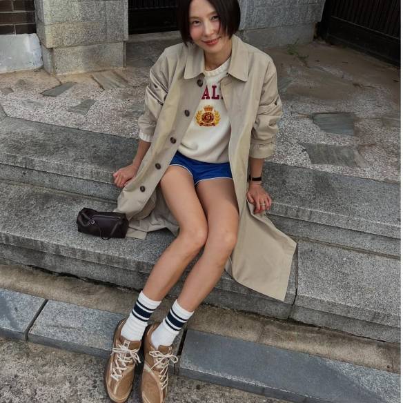 김나영은 사선 레이스업 디테일이 있는 휠라 에샤페 LX v2 운동화를 착용했는데요. 가을하면 떠오르는 필수템, 트렌치코트와 스포티한 쇼츠를 매치해 발랄한 믹스매치 룩을 보여줬죠. 간절기 룩으로 딱!