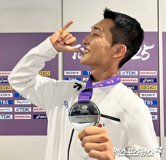 이날 시상식 후 엑스포츠뉴스와 단독으로 만난 우상혁은 "대한민국 선수로 오리건에서 첫 번째 메달에 도전했을 때 메달을 땄고, 그때도 너무 기뻤는데 두 번째 메달을 또 만들 수 있다는 것에 대해 너무 기쁜 하루가 된 것 같다"라고 말했다.