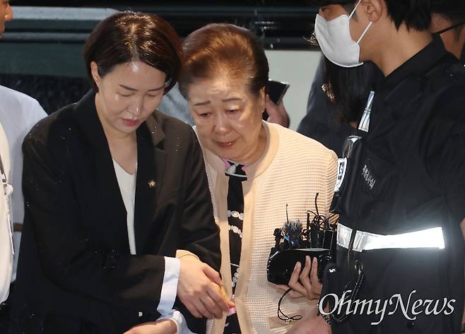 | ▲ 김건희(파면된 전직 대통령 윤석열의 아내)씨와 권성동 국민의힘 의원에게 금품을 건넸다는 의혹를 받는 한학자 통일교 총재가 17일 오전 서울 종로구 KT광화문빌딩 WEST(웨스트)에 마련된 김건희 특검(특별검사 민중기) 사무실에서 조사를 받기 위해 출석하고 있다. |