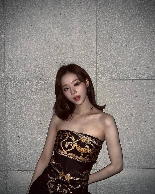 공개된 사진 속 윈터는 실크 스카프를 두른 듯한 튜브탑 드레스로 고급진 무드를 연출했다.