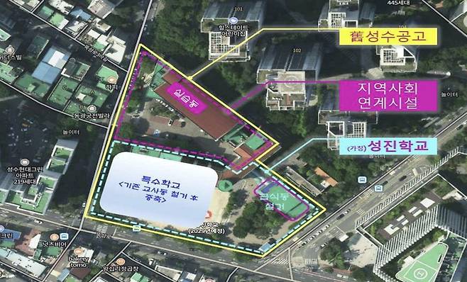 성수공고 터 중 약 60%는 성진학교로 확정됐지만, 나머지 40%는 일반학교 건립이나 인공지능(AI) 직업교육원 등 주민 요구가 검토되고 있다.