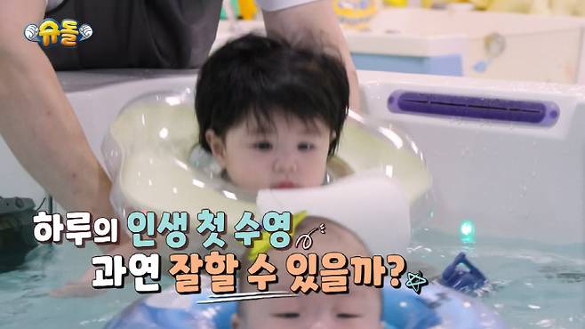 이에 진짜 수영을 위해 수영장을 찾았고, 이 과정에서 수영복을 입은 채 목에 튜브를 끼고 있는 하루의 모습은 귀여움 가득하다.
