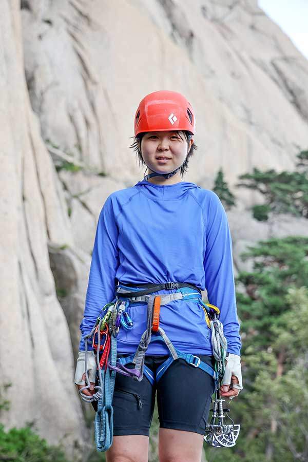 뜨거운 햇볕이 내리쬐는 날씨. 하루 종일 바위에 붙어 있자면 어떤 옷을 입을지는 꽤 중요하다. 반팔 상의를 입는 것보다 얇은 긴팔을 입는 것이 햇빛을 막아 주어 오히려 시원할 수 있다. 이번 울산바위 등반 내내 블랙다이아몬드 알펜글로우 후디를 입었다. 모자가 있는 후디형 제품이라 목 뒤나 얼굴도 햇빛을 막을 수 있었다. 등반하는 이틀 내내 입었고 계속 땀이 뻘뻘 났지만 땀 냄새가 나지 않았다. 폴리진POLYGIENE 항균 기술 덕분이다. 이 기술은 냄새를 유발하는 박테리아의 성장을 억제해 세탁 없이 여러 번 입을 수 있도록 해준다. 울산바위를 등반하며 거친 바위 표면에 어깨, 소매, 배, 거의 온 몸을 비벼 댔지만 알펜글로우 후디는 멀쩡했다. BD.cool 냉각 기술로 근적외선 71%를 반사하는 소재의 제품이다. 덕분에 땀이 나더라도 금방 마르고 휴식하는 동안은 선선하기까지 했다.