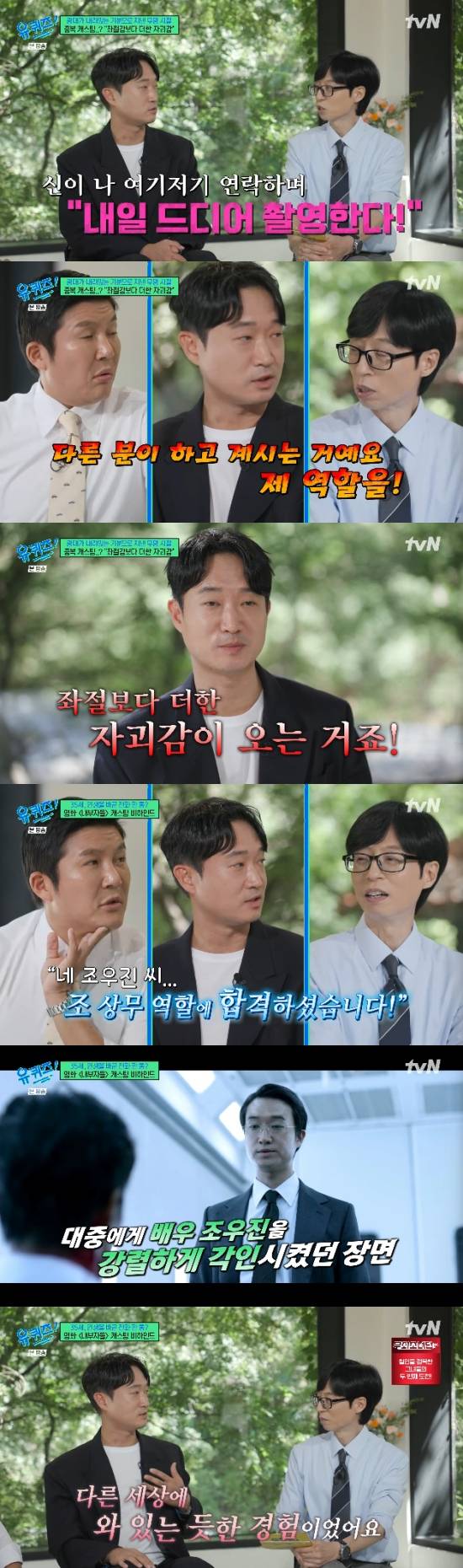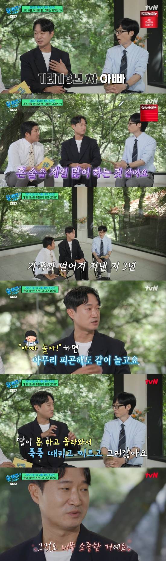 '유퀴즈'에서 배우 조우진이 현재 기러기 아빠 생활을 하고 있음을 고백했다.