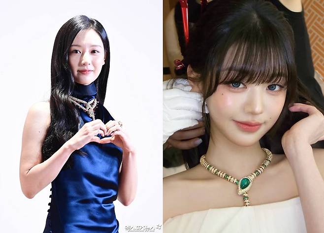헤어와 메이크업을 받으며 카메라를 응시한 장원영, 다양한 포즈를 취하며 아름다운 미모를 자랑했다. 배우 김지원 또한 올해 3월 불가리 ‘세르펜티 인피니토’ 전시 기념 포토행사에서 화려한 불가리 제품의 악세서리를 착용해 화제를 모으기도 했다. 황금 뱀 모티브의 주얼리 목걸이는 단순한 액세서리를 넘어 올해의 상징성과 맞닿아 강렬한 인상을 남겼다.
