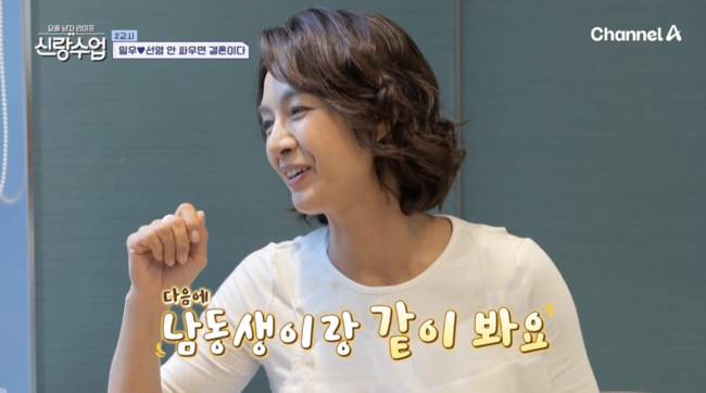 대화를 지켜보던 패널 이승철은 “왜 두 분은 중요한 얘기는 안 하고 흰자 얘기만 하냐. 진도를 더 나가야 한다”며 답답함을 표했다. 이에 김일우는 “혹시 남동생이 ‘매형 데리고 와 봐’ 같은 말은 안 하냐”고 직설적으로 물었고, 박선영은 동생과의 일화를 전했다. 그는 “우리 집 동생은 다른 누나들은 책 보고 수다 떠는데, 나는 농구장에서 뛰고 있냐고 항상 불만이었다”며 웃음을 터뜨렸다.