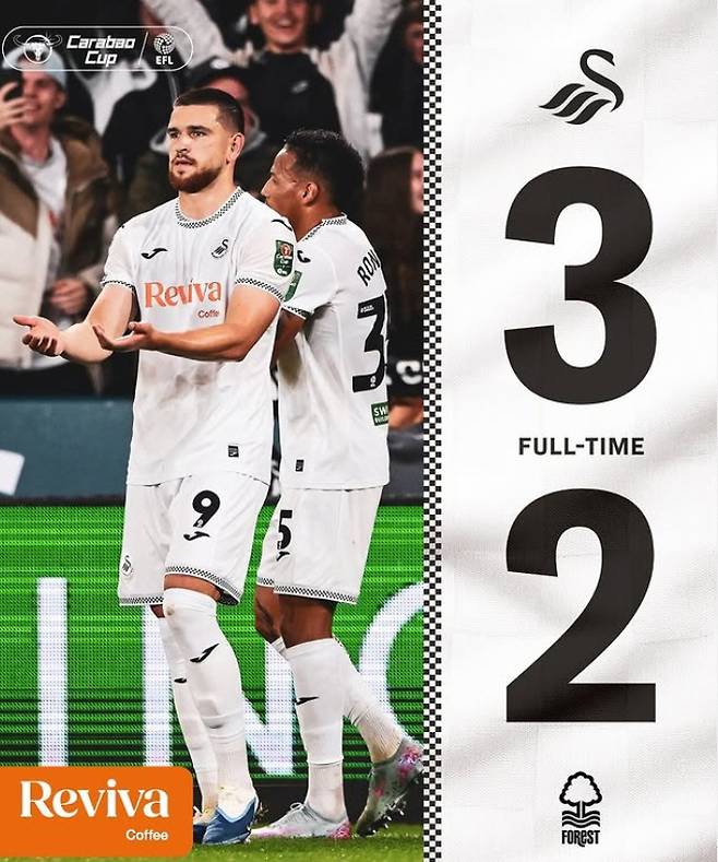 노팅엄은 14일(이하 한국시각) 영국 스완지의 스완지닷컴 스타디움에서 열린 챔피언십(2부) 스완지시티와의 2025~2026시즌 잉글랜드 카라바오컵(리그컵) 3라운드에서 2대3으로 역전패하며 조기 탈락했다.