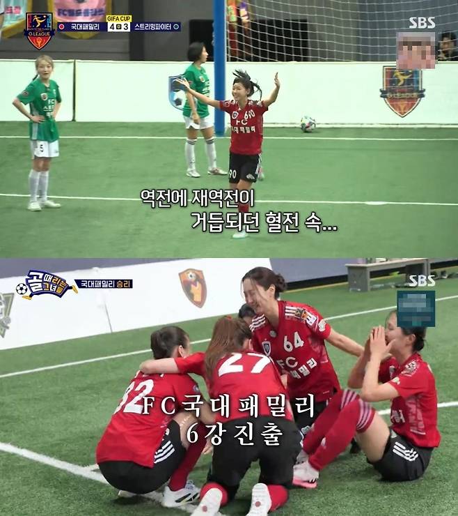 그러자 꽉 막혔던 국대패밀리의 공격이 활발하게 재개되었다. 박하얀이 2명의 수비수를 개인기로 제치면서 절묘한 오른발 슛으로 3대 3 동점을 만들었다. 뒤이어 경기 종료 직전에는 골문 안으로 강하게 차 넣은 공이 김민지의 등에 맞고 골망을 가르는 행운의 결승 득점을 완성시켰다.