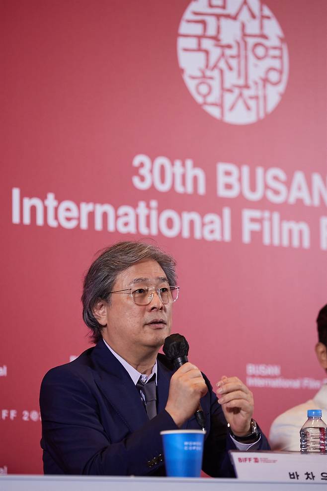 박찬욱 감독 : 제 거의 모든 영화를 부산에서 일부 장면이라도 촬영을 했던 기억이 있습니다. 꼭 부산이 아니어도 될 때조차 항상, 그래도 부산에서 안 찍으면 섭섭하다는 마음으로 억지로라도 부산 분량을 만들어서 넣곤 했습니다. 이번에도 그랬고요. 개인적으로도 부산을 좋아해서 자주 내려와서 시간을 보냅니다. 바다도 있고, 복잡한 도시 풍경도 있고, 영화가 필요로 하는 모든 풍경을 다 갖춘 곳이 부산이라고 생각하고요. 영화제를 하기에도, 영화를 만들기에도, 시나리오를 쓰기에도 최고의 도시가 아닐까 싶습니다.