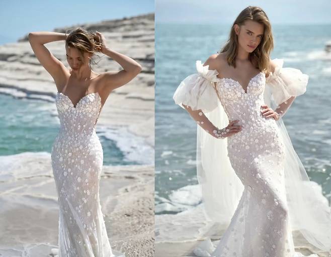 룩북 모델은 같은 드레스에 풍성한 볼륨감의 볼레로와 케이프 등을 매치해 청초한 룩으로 연출했다. 전종서가 머리카락을 묶어 목선을 드러낸 반면 모델은 웨이브 헤어를 자연스럽게 풀어내려 가볍게 연출했다.