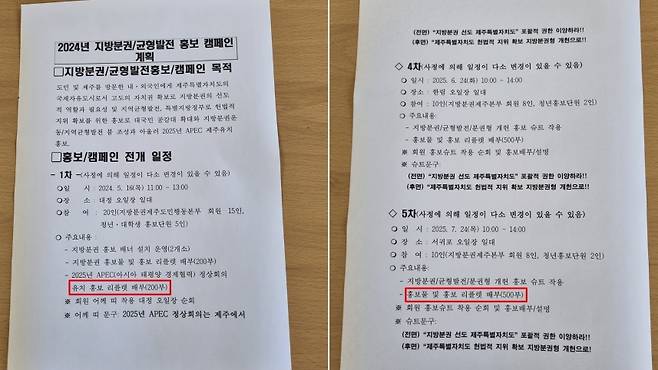 또, 제주도는 해당 단체는 '특별자치분권 촉진 및 지원' 조례에 따라 홍보 활동 지원은 가능하지만, 물품의 성격과 배포 방식 등 홍보 수단의 적정성을 사전에 면밀하게 검토하지 못한 것으로 파악됐다고 설명했습니다.