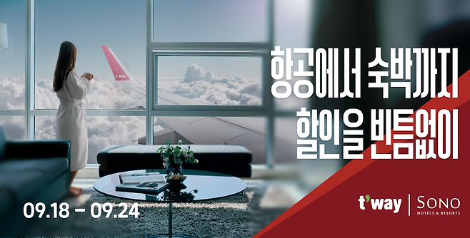 티웨이항공 관계자는 “소노호텔앤리조트와 프로모션을 통해 항공권을 넘어 숙박 할인 혜택까지 함께 마련했다”며 “앞으로도 티웨이항공은 안전운항을 최우선으로 고객이 합리적인 비용으로 더욱 편리하게 여행하실 수 있도록 최선을 다하겠다”고 말했다.