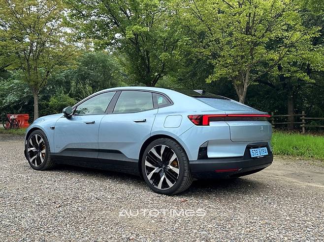 측면은 폴스타4의 성격을 가장 잘 보여준다. 루프 라인은 완만하게 뒤로 떨어지며 기존 쿠페형 SUV와 비교해도 한층 더 유려하다. 곡선은 시각적인 안정감과 파격적인 느낌이 공존한다. 긴 보닛과 짧은 오버행, 깔끔하게 처리된 도어 패널은 단정하면서도 힘이 느껴진다.