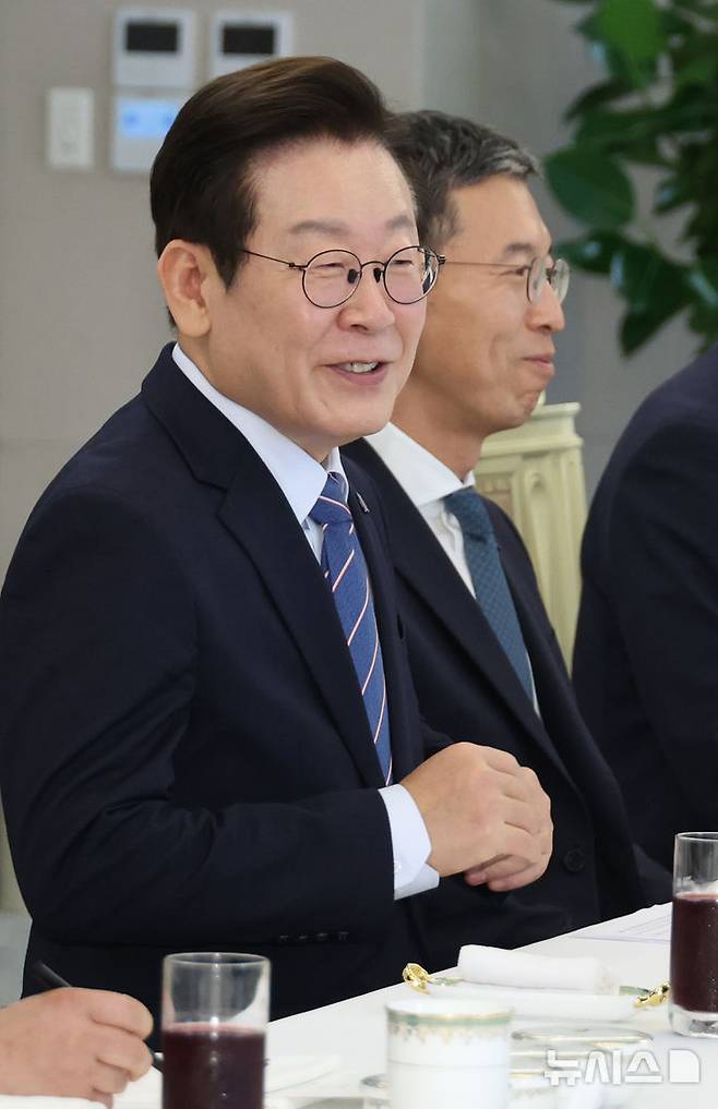[서울=뉴시스] 고범준 기자 = 이재명 대통령이 18일 서울 용산 대통령실 청사에서 열린 증권사 리서치센터장 오찬 간담회에서 발언하고 있다. (대통령실통신사진기자단) 2025.09.18. bjko@newsis.com