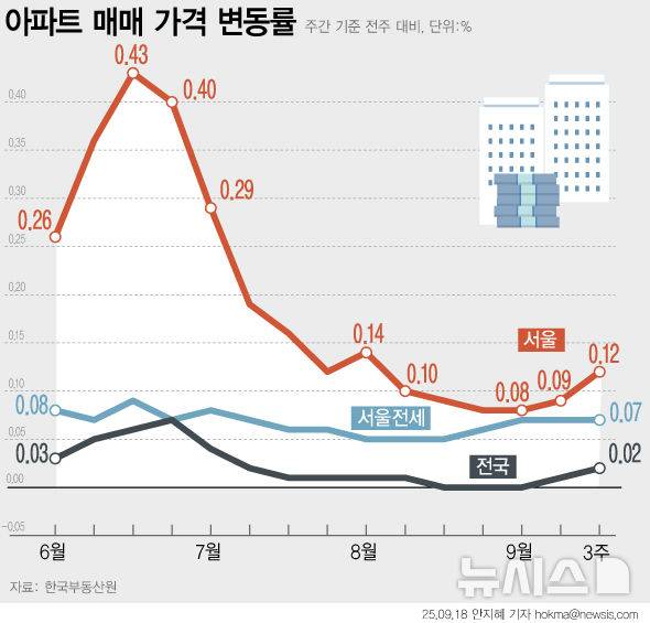 [서울=뉴시스] 9·7 주택공급 대책 발표에도 서울 집값 상승폭이 2주 연속 확대되면서 5주 만에 0.1%를 넘어섰다. 33주 연속 상승세다. (그래픽=안지혜 기자)