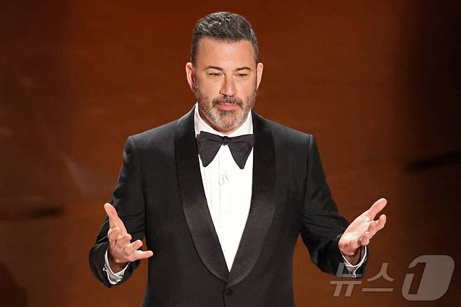 (로스앤젤레스 로이터=뉴스1) 윤다정 기자 = 지미 키멜이 2024년 3월 10일(현지시간) 캘리포니아주 로스앤젤레스 할리우드에서 열린 제96회 아카데미 시상식에서 개막 인사를 하고 있다. 2024.3.10.