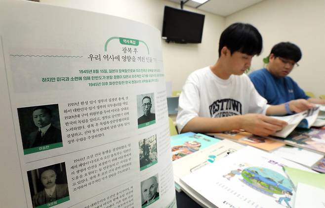 | ▲ 2024년 8월 30일 새 교육과정(2022개정 교육과정) 적용으로 학교 현장에서 사용할 새 중학교 역사·고등학교 한국사 교과서의 검정 결과가 공개됐다. 이 중 처음 검정을 통과한 한국학력평가원의 교과서는 보수적 시각으로 현대사를 서술했다는 평가가 나온다. |