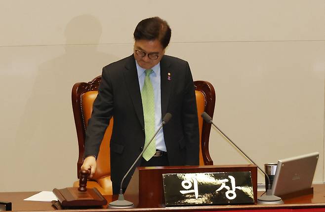 | ▲ 윤석열 대통령이 국무회의 의결을 통해 비상계엄을 해제한 2024년 12월 4일 오전 서울 여의도 국회 본회의에서 우원식 국회의장이 산회를 선포하고 있다. |
