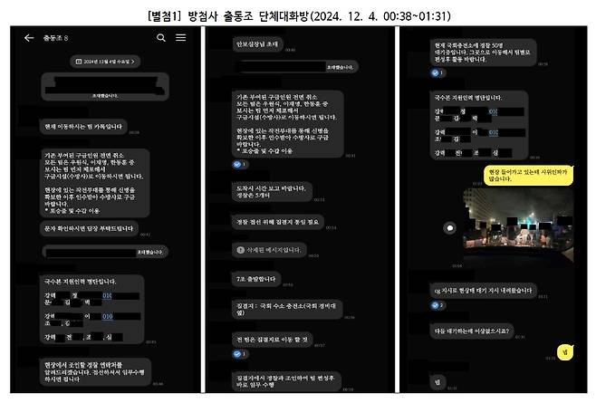 | ▲ 검찰 12.3비상계엄특별수사본부가 2024년 12월 27일 김용현 전 국방부 장관 기소 당시 공개한 비상계엄 당일 방첩사의 '체포조' 관련 단체대화 내용 |