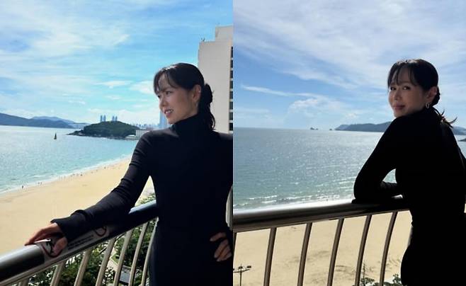 손예진은 18일 자신의 SNS에 '#부산국제영화제 #어쩔수가없다 #9월24일개봉 #많이보러와주세요'라는 글과 함께 여러 장의 사진을 공개했다. 사진 속 손예진은 부산 해운대 앞바다를 배경으로 블랙 터틀넥 상의를 입고 단정하면서도 세련된 분위기를 뽐내고 있다. 따사로운 햇살을 받으며 바다를 바라보거나 환하게 웃는 모습이 고혹적이면서도 우아하다.