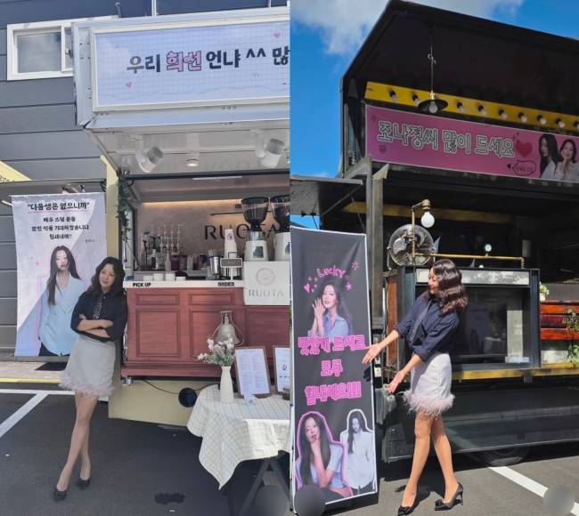 [OSEN=선미경 기자] 배우 김희선이 송혜교의 응원 간식차 선물에 활짝 웃었다.