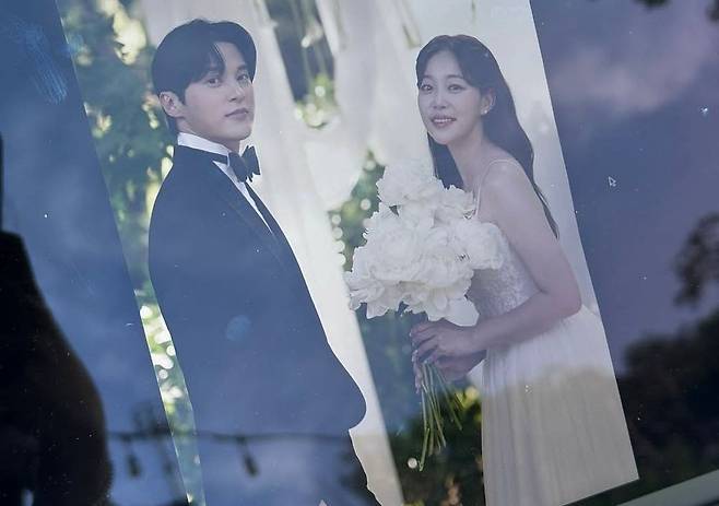 김가은은 "10년간 한결같은 마음으로 응원해 주고 내 편이 돼 준 윤선우와 평생을 함께하기로 했다. 예쁘고 행복하게 잘 살겠다"라는 글과 함께 웨딩 화보를 공개했다.