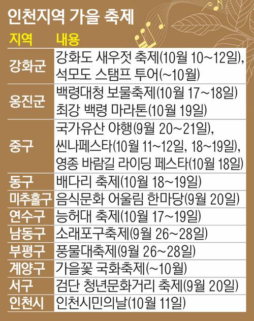 무더위가 한풀 꺾이는 가을 초입부터 인천 곳곳에서 시민들이 참여할 수 있는 다양한 축제가 펼쳐진다.