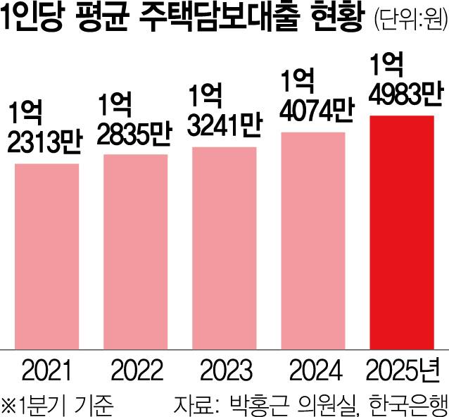 [단독] 1인당 주담대 1.5억 '사상 최대' 찍었다···치솟는 집값에 가계빚 적신호